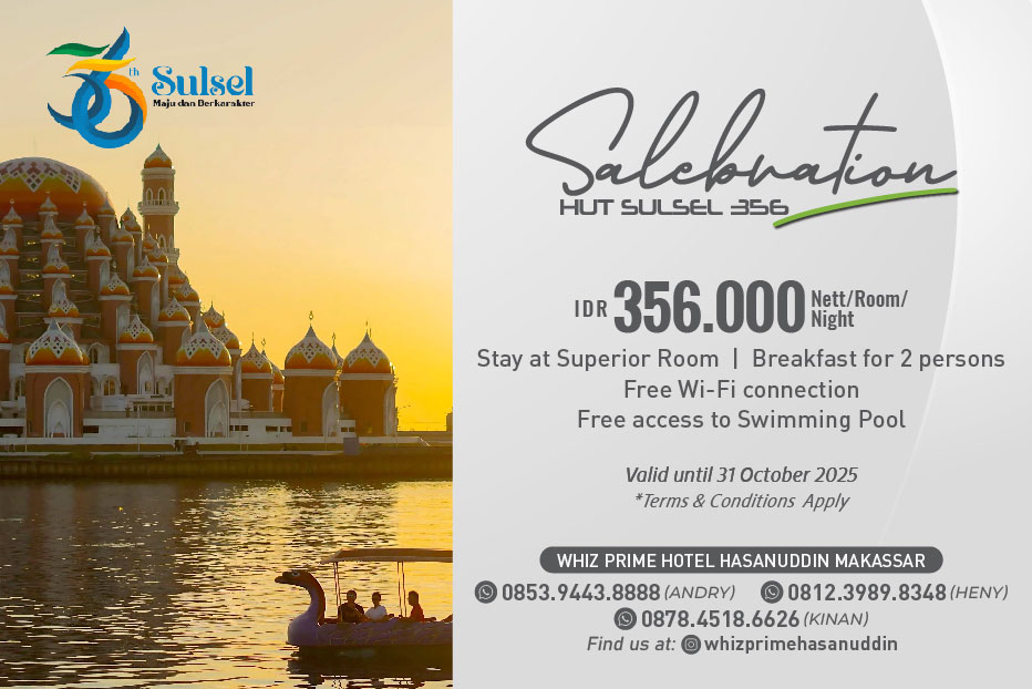 Whiz Prime Hotel Hasanuddin Makassar is affordable and dynamic 3 stars hotel located in the heart of Makassar City at Jalan Sultan Hasanuddin No. 4. Rooms are equipped with the latest LCD televisions, high quality healthy beds and soft cotton bed linens and duvets, free and truly high speed Wi-Fi. This area is a prime business area and featuring `One Stop Services Concept` surrounded by Shopping Center, Entertaiment, Culinary Center and Public transportation terminal. This hotel is a perfect place for your business and family gateaway.
